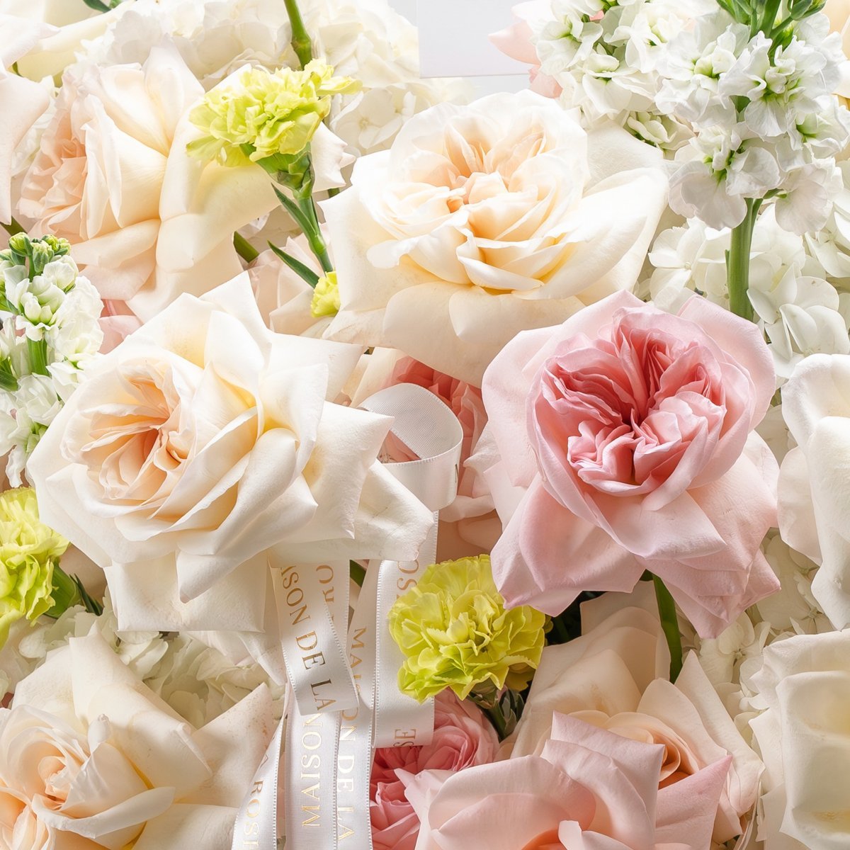 A radiant arrangement that captures the warmth of a sunlit garden. Sunkissed Bloom combines creamy ivory and blush roses with cheerful pops of lime and soft peach hues, elegantly nestled in a woven basket. It’s a breath of fresh air—perfect for celebrating new beginnings or simply brightening someone’s day.